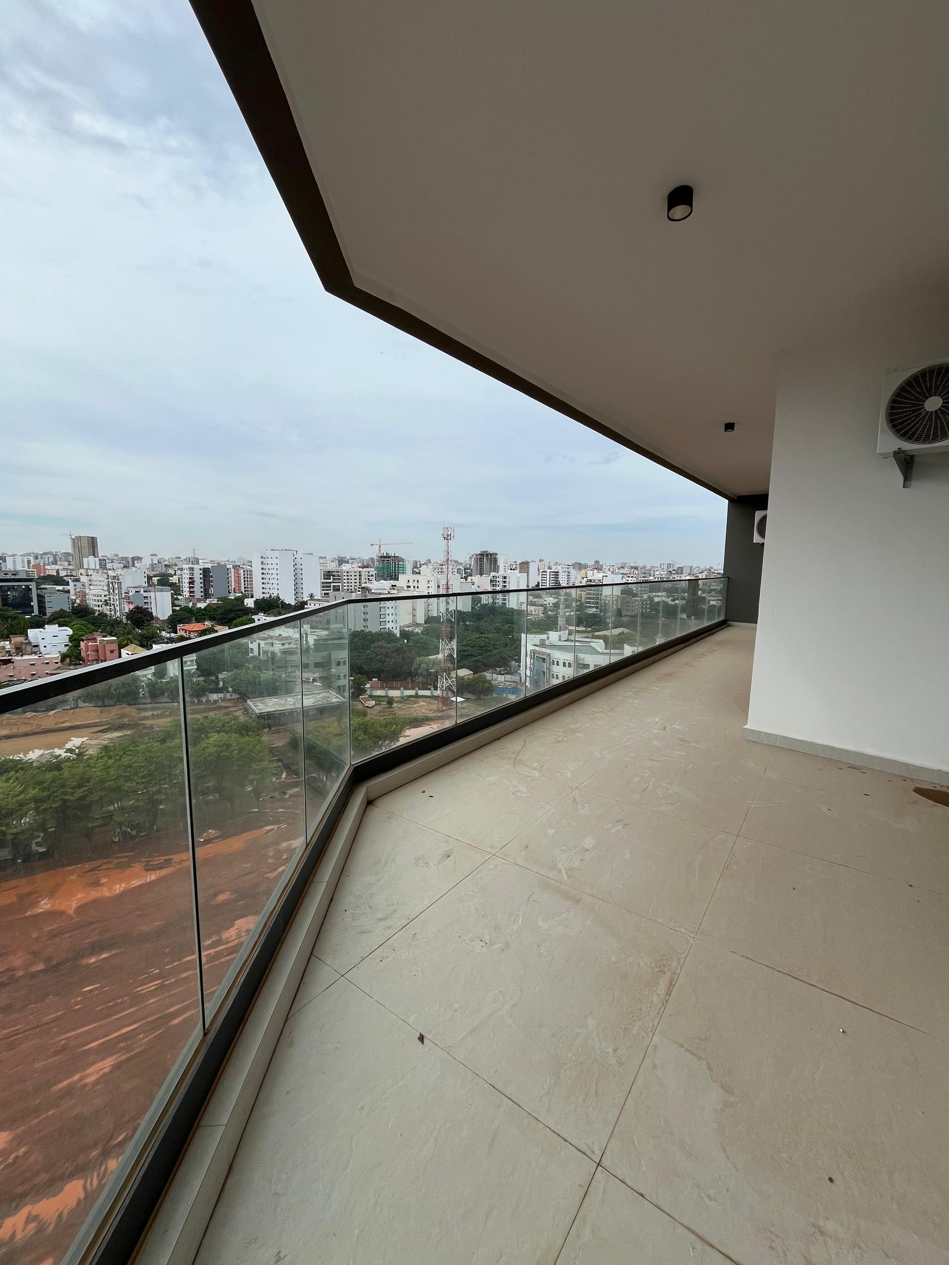 Un grand salon lumineux ouvrant sur un balcon panoramique, une cuisine moderne et fonctionnelle, ainsi qu’une toilette personnelle.Espace nuit