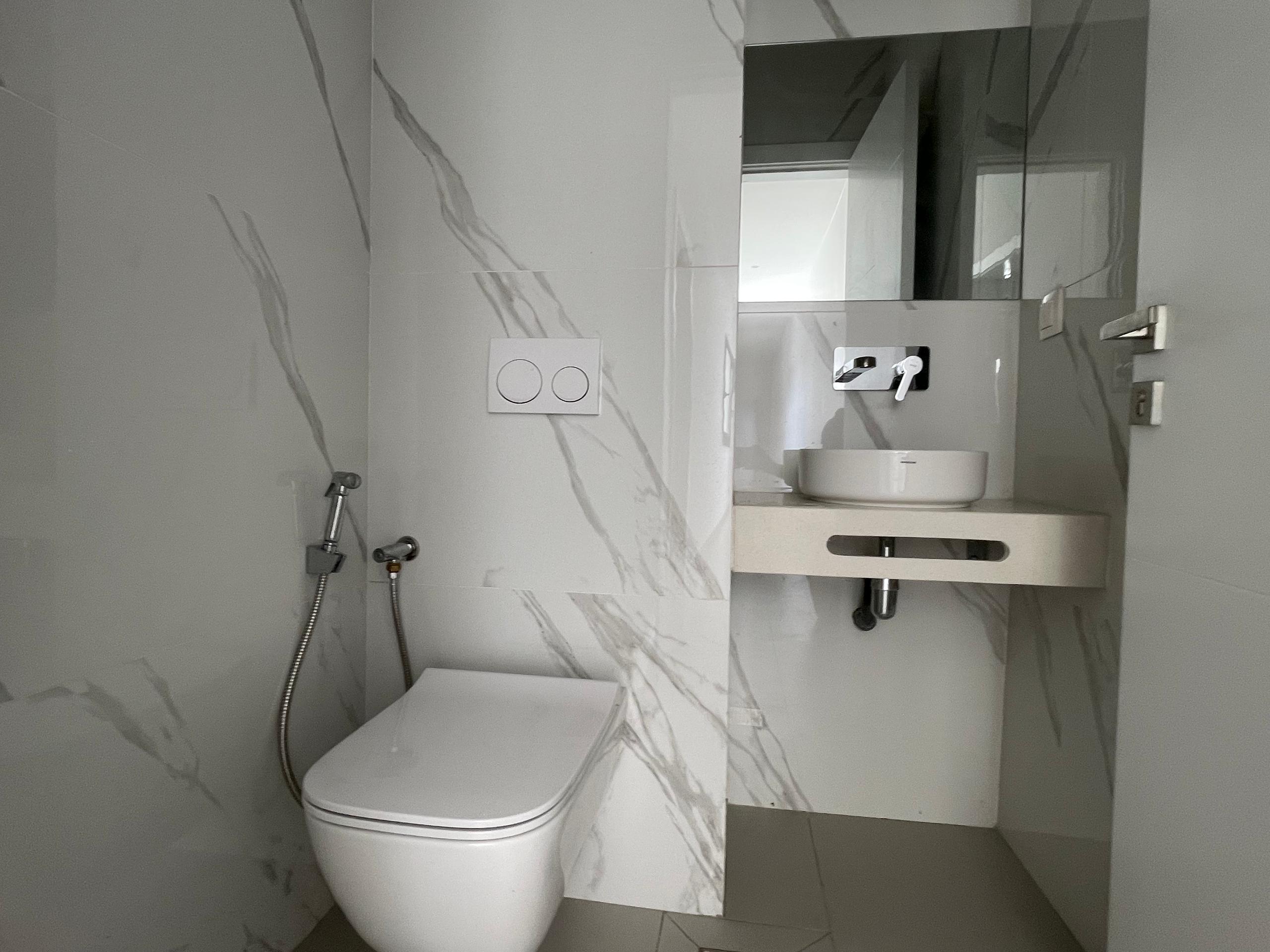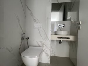 Trois chambres avec salles d’eau privatives : la chambre principale dispose d’une salle d’eau avec double vasque et balcon, la deuxième comprend un placard et sa propre salle d’eau, tandis que la troisième, spacieuse, offre une salle d’eau et reste modulable selon vos besoins.L’appartement dispose également de caves sur la terrasse (5 à 7 m²), permettant un stockage pratique et sécurisé pour les résidents.