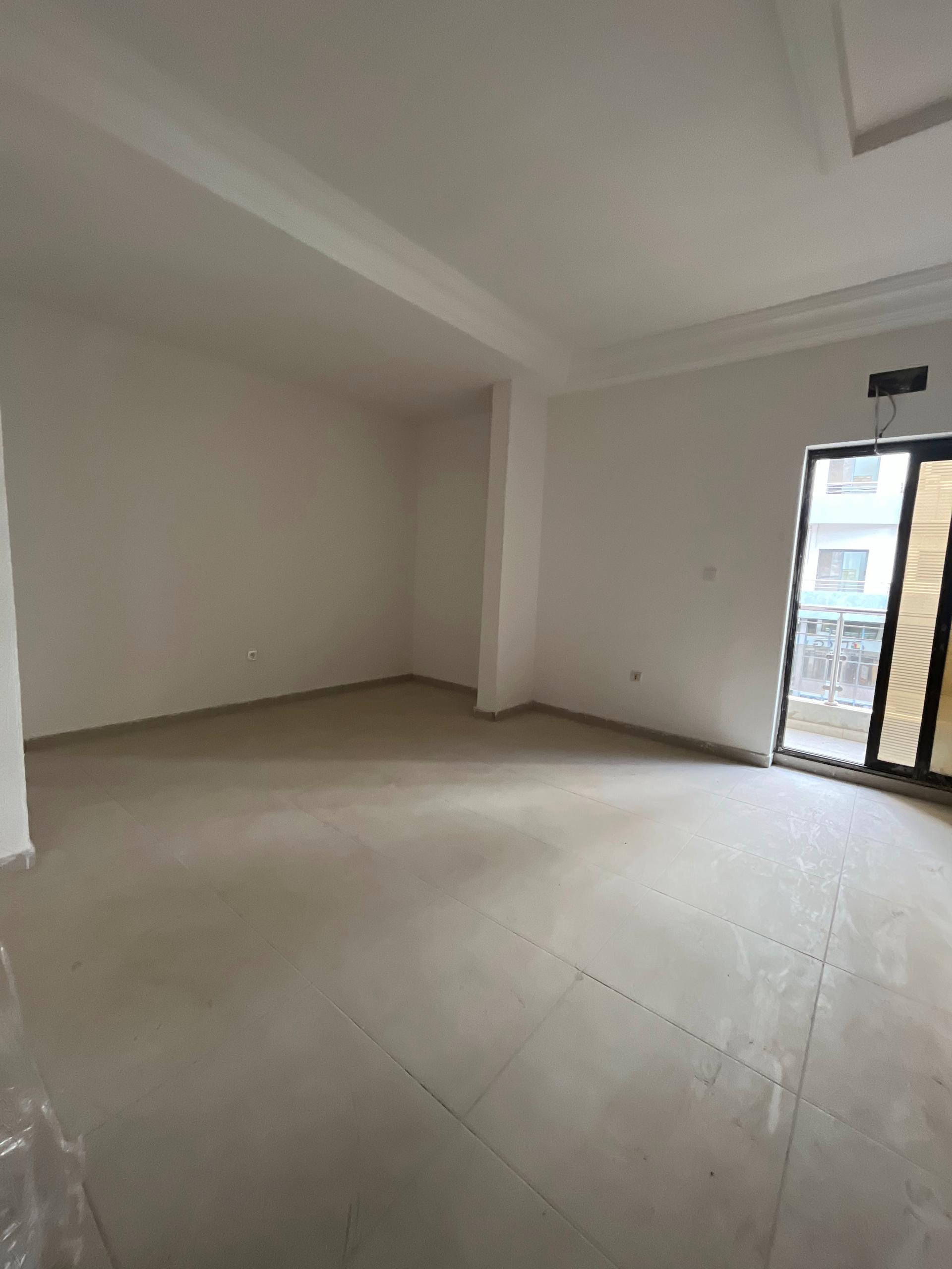 vaste salon avec balcon donnant sur l’avenue, couloir d’entrée élégant, cuisine moderne équipée, buanderie et toilette visiteurs.Espace nuit