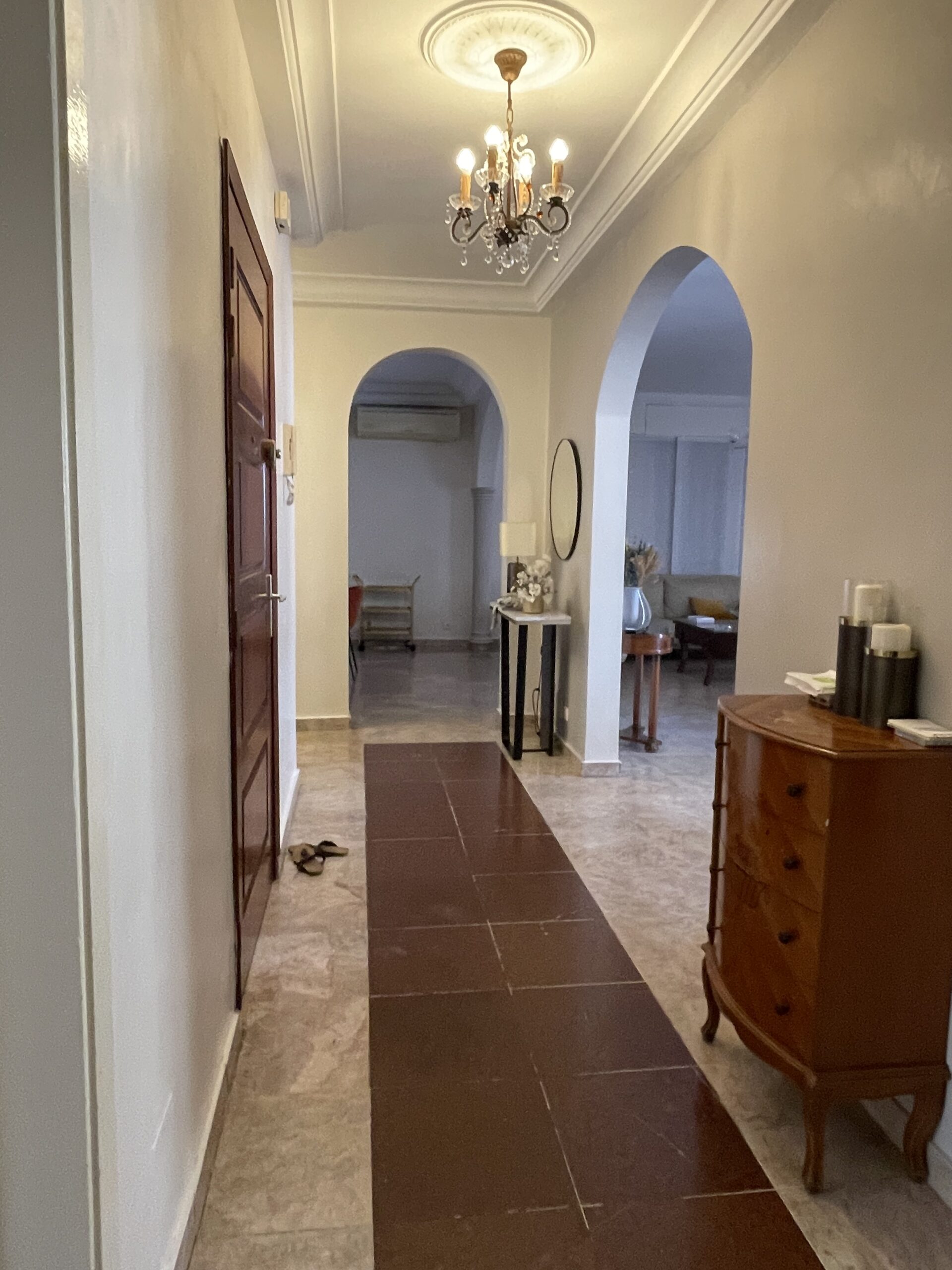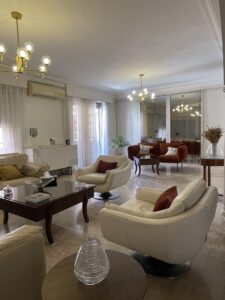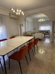 Dès l’entrée, vous êtes accueilli dans un vaste séjour baigné de lumière, articulé autour de deux salons élégamment disposés, d’un coin salle à manger généreux et d’un espace familial ouvert, idéal pour les moments partagés. Le tout s’ouvre sur un balcon filant, apportant une belle respiration et une vue dégagée.