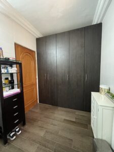 Toujours au premier niveau, une première chambre indépendante vient compléter cet espace. Elle dispose de placards intégrés, d’un balcon privatif et bénéficie d’une salle d’eau attenante, offrant ainsi un confort optimal pour un invité, un adolescent ou un espace bureau.