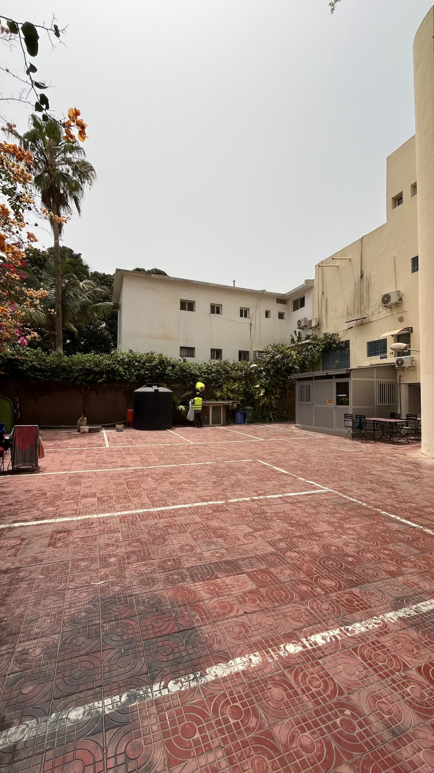 L’arrière-cour accueille une cuisine collective, un local technique, un vestiaire, et un parking pouvant recevoir jusqu’à 8 véhicules.Équipements : groupe électrogène, surpresseur, réservoir d’eau, système de surveillance complet, accès sécurisé et poste de garde.